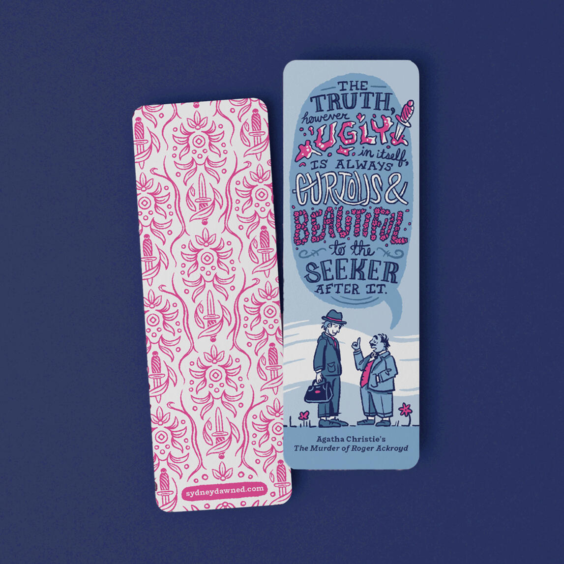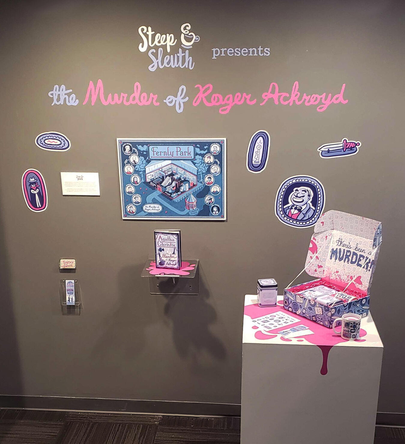 My senior thesis project at the Milwaukee Institute of Art & Design was Steep & Sleuth: a proposed book subscription service that paired mystery novels with quality teas. Each box would come with a new edition of the title and a tin of tea, along with other themed goodies, such as a mug, poster, bookmark, and stickers.This initial run showcased Agatha Christie’s 1926 classic,