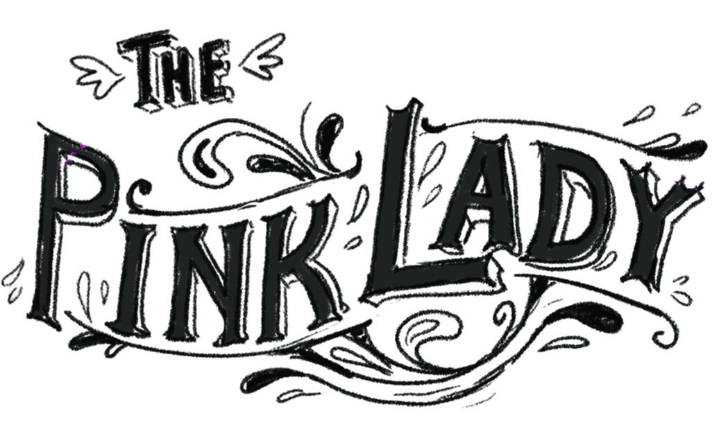 The Pink Lady is a Prohibition-era cocktail. Though some debate remains about its specific namesake and origins, its bright pink, grenadine-fueled color is unquestionable. I created an anthropomorphic Pink Lady to represent the drink, taking inspiration from American 1920s fashion. The wordmark on left is a modern twist on '20s sign lettering.