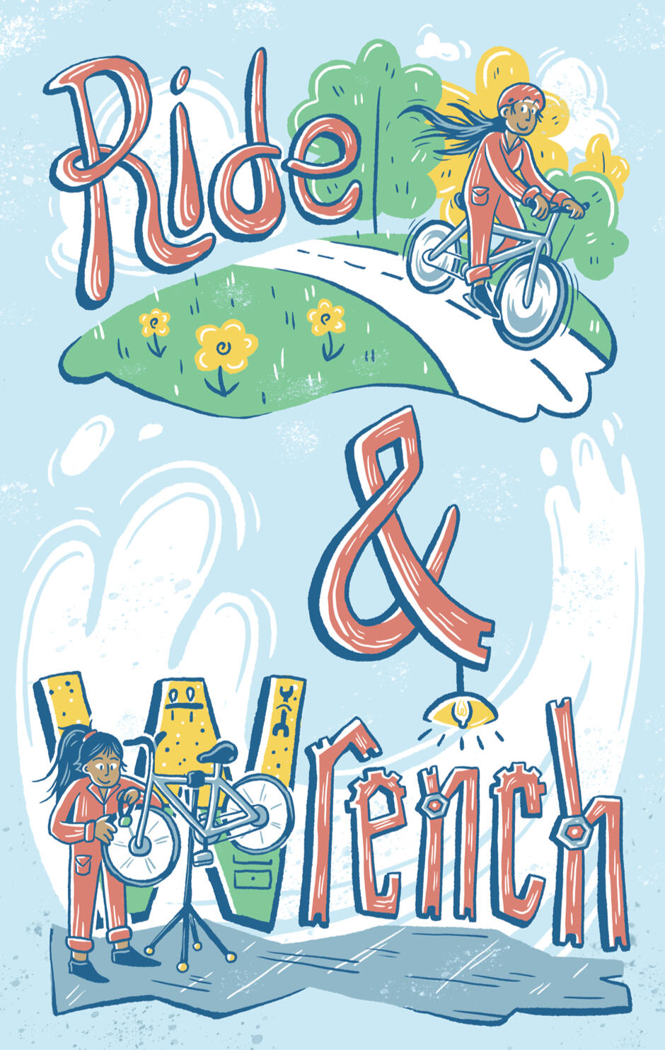 This piece was one of 20 finalist poster designs in a collaboration between Trek Bikes and the Milwaukee Institute of Art & Design. Each third-year illustration student was asked to make a promotional poster for a Trek sponsored bike ride. I was assigned the theme "Ride & Wrench," a dual ride and bike maintenance event targeted towards new and younger riders.