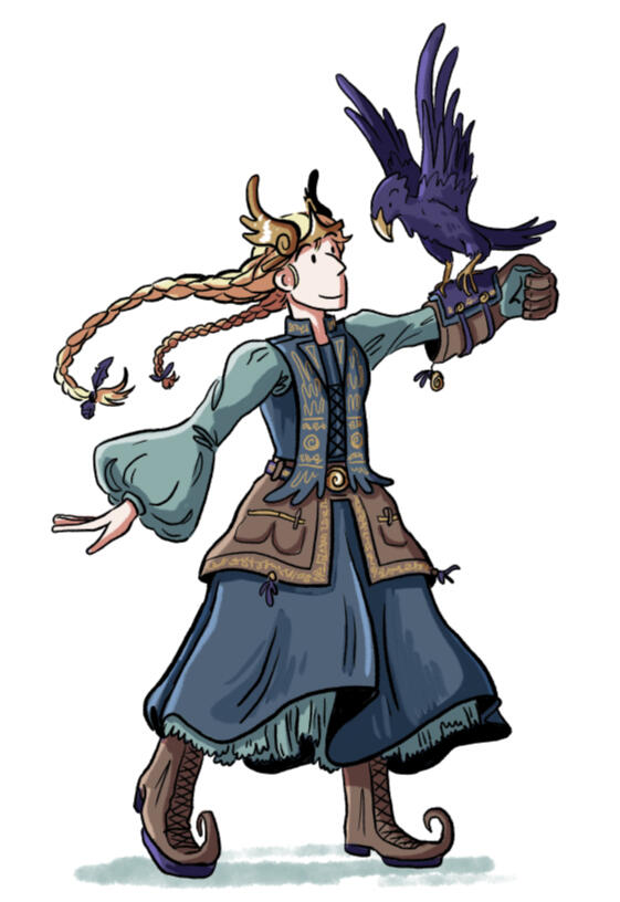 Ravenskeep is a story concept driven by Norse mythology, created as part of a concept art class in 2024. I was tasked with creating a character, environment, and prop for this world, and ended up with a chosen mortal raven trainer, a Midgard vacation home for Odin, and a somewhat-disgusting magic telescope!