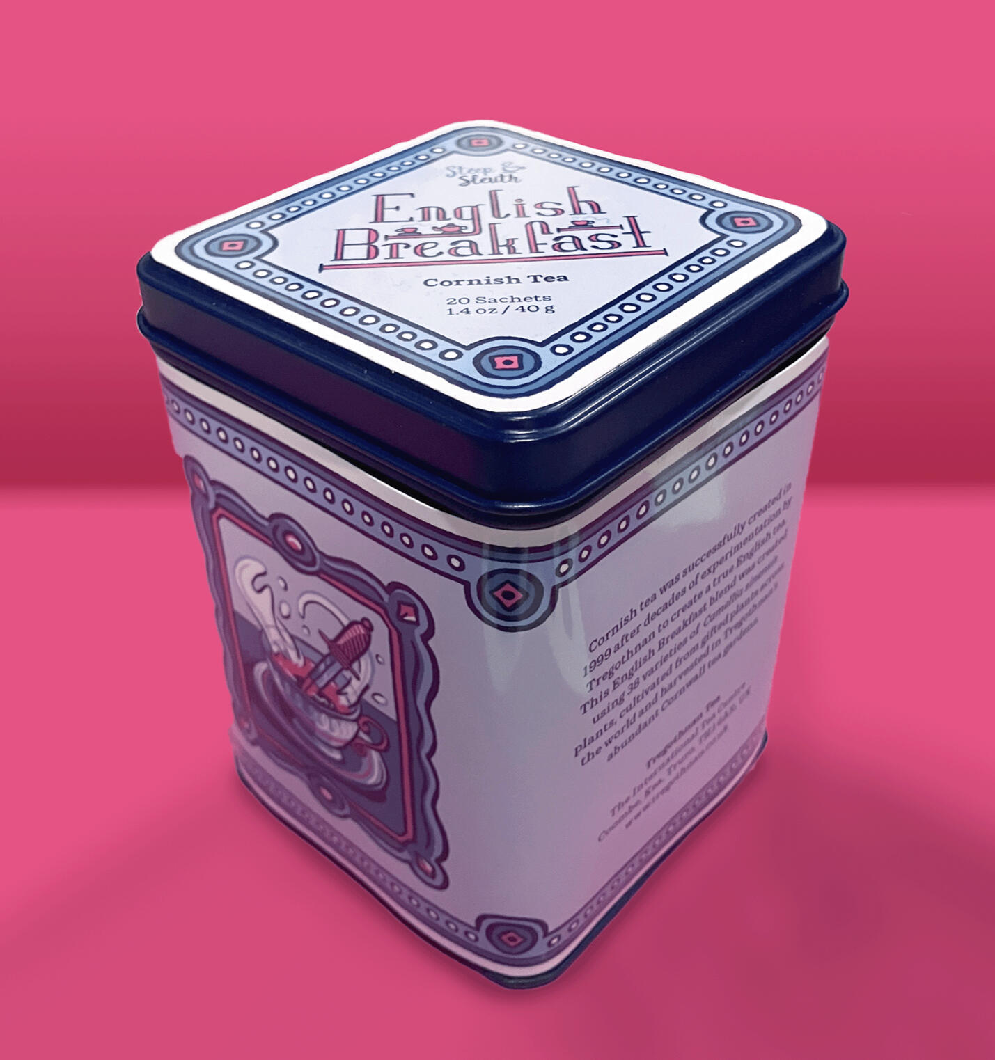 Paired with Christie's novel was a tin of English Breakfast tea. I couldn't include any real tea in the exhibition, but if I could have, it would have been made in Tregothnan's Cornish tea farms.