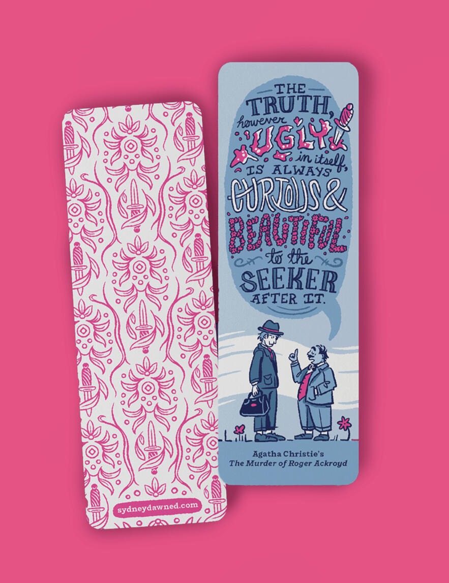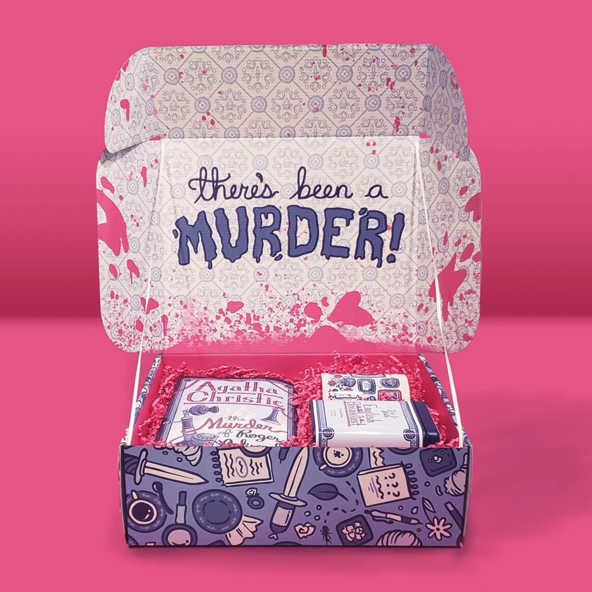 My senior thesis project at the Milwaukee Institute of Art & Design was Steep & Sleuth: a proposed book subscription service that paired mystery novels with quality teas. Each box would come with a new edition of the title and a tin of tea, along with other themed goodies, such as a mug, poster, bookmark, and stickers.This initial run showcased Agatha Christie’s 1926 classic,