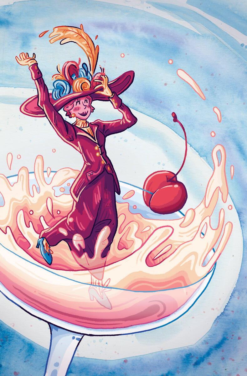 The Milwaukee Institute of Art and Design contributed illustrated cocktail books as freebies at the 2024 ICON12 Illustration Conference, using spreads designed by the Junior class. These designs needed to have an illustrated wordmark, historic recipe, and a full-page illustration using MIAD's colors (magenta, red, orange, and blue). I was fortunate enough to be one of the 16 students selected for the final booklet.