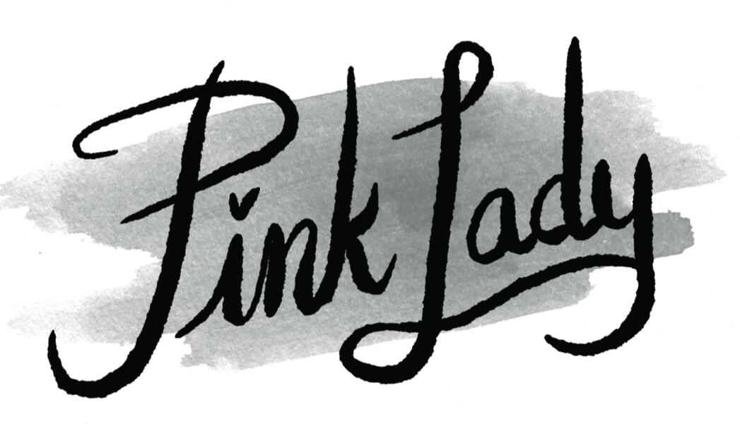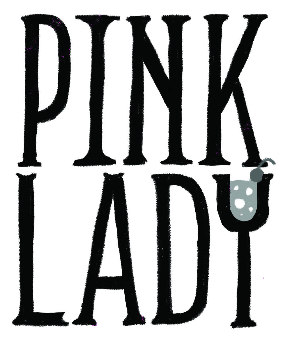 The Pink Lady is a Prohibition-era cocktail. Though some debate remains about its specific namesake and origins, its bright pink, grenadine-fueled color is unquestionable. I created an anthropomorphic Pink Lady to represent the drink, taking inspiration from American 1920s fashion. The wordmark on left is a modern twist on '20s sign lettering.