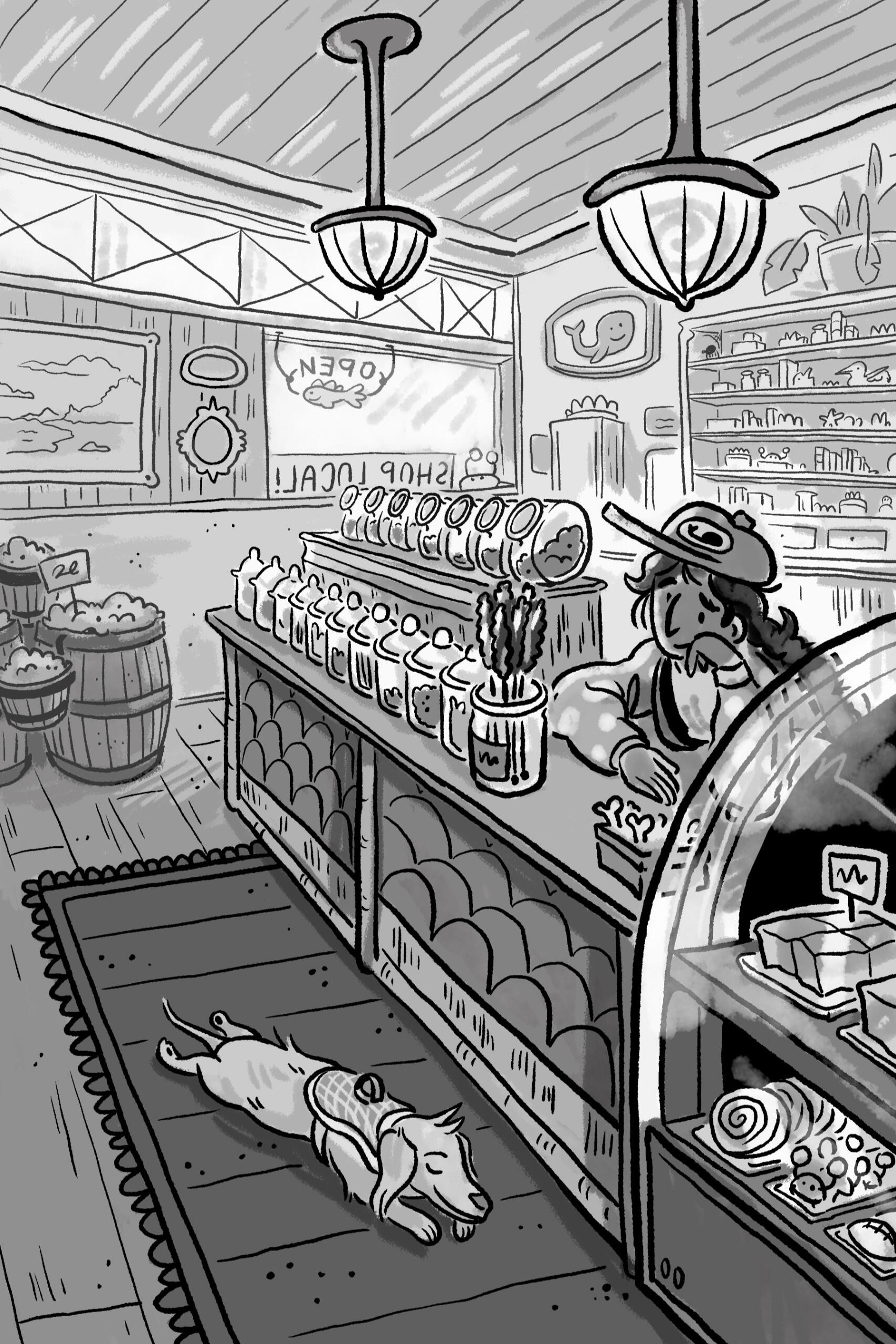 Neva Swell Saves Dorsa Bay is the working title for my illustrated YA novel about community, anxiety, and finding out that your dog is actually a reverse-werewolf who runs a local cryptid book club.